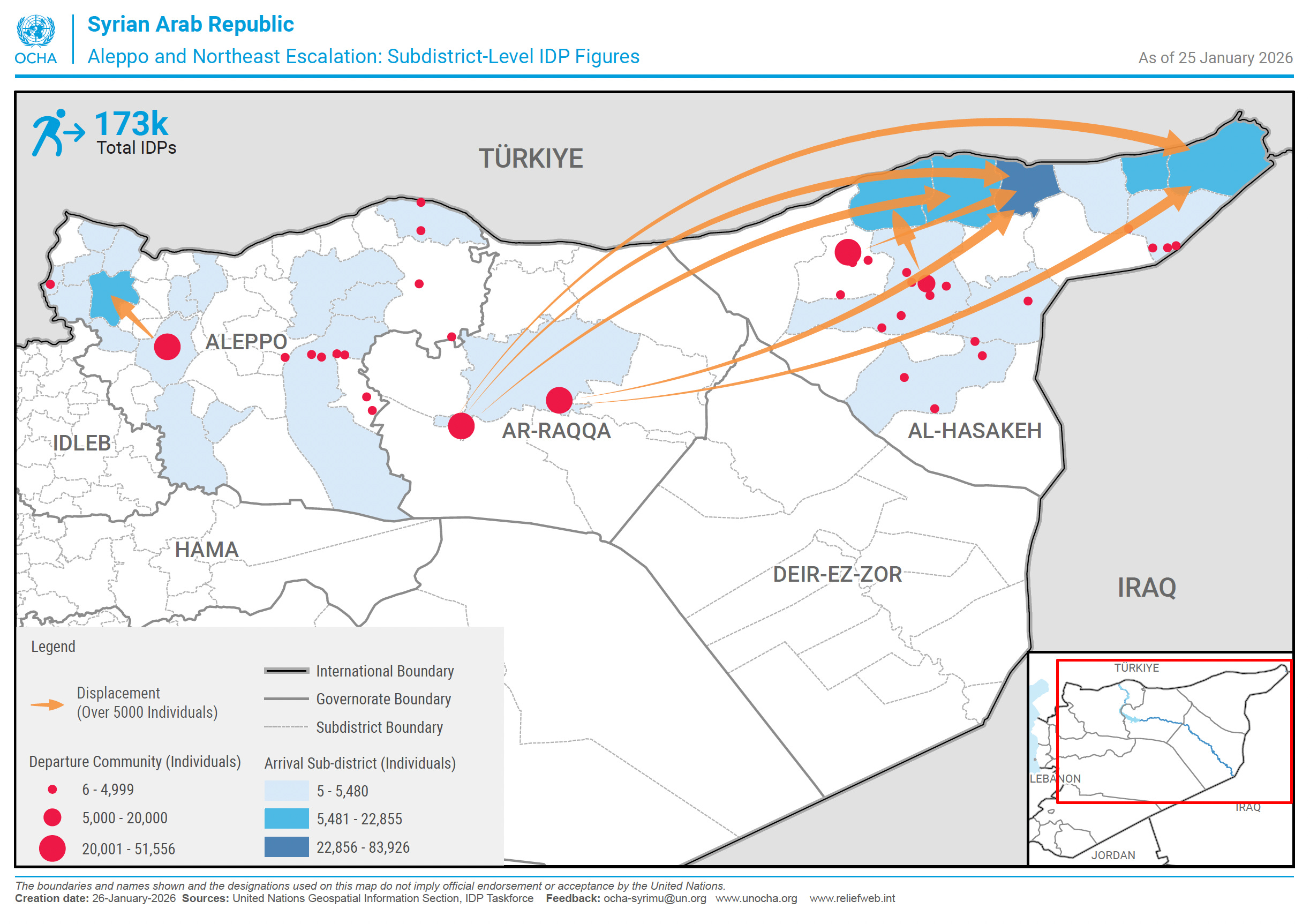 On the ground: An estimated 173,000 people were displaced by recent conflicts in northern Syria, the International Organization for Migration reported Sunday. (scroll down for map)