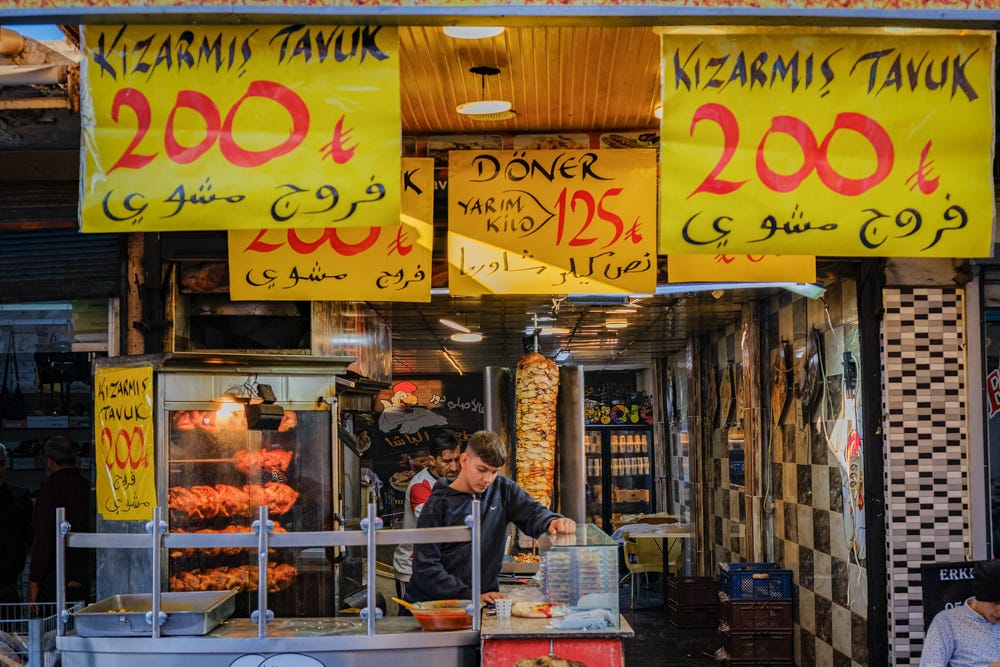 The street is lined with chicken roasters, falafel wrappers, gold dealers, spice vendors, phone repair shops, clothing stores, bakeries and beauty parlors managed by Syrians, creating a home away from home, just a 10-minute drive from the modern Adana city center.